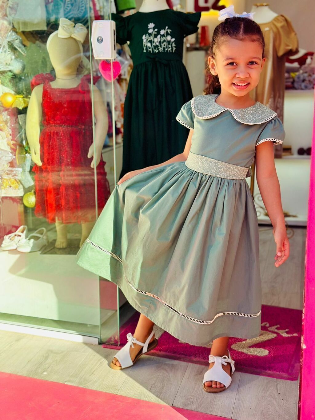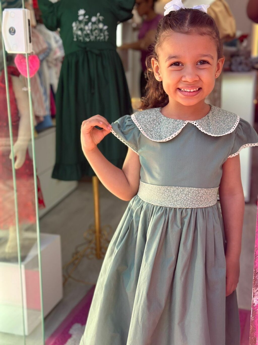 Apresentamos o encantador Vestido de Festa em Algodão verde, golinha e cinto com desenho floral, uma peça que traz o equilíbrio perfeito entre estilo e conforto para as princesas que adoram brilhar!